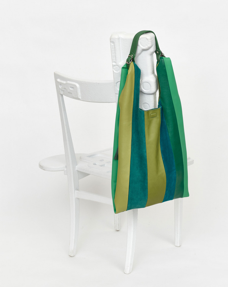 Geräumige Schultertasche aus unterschiedlichen Ledern