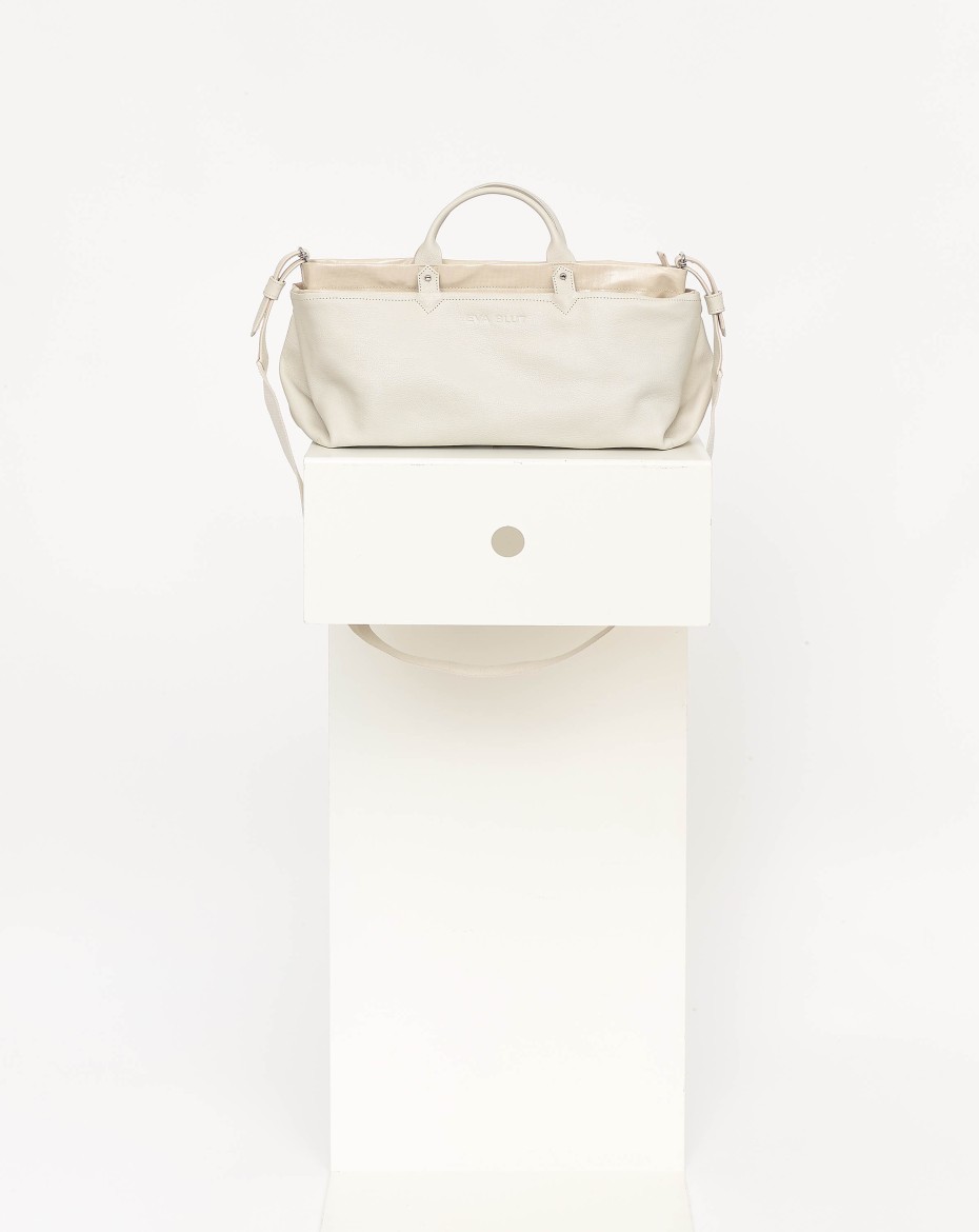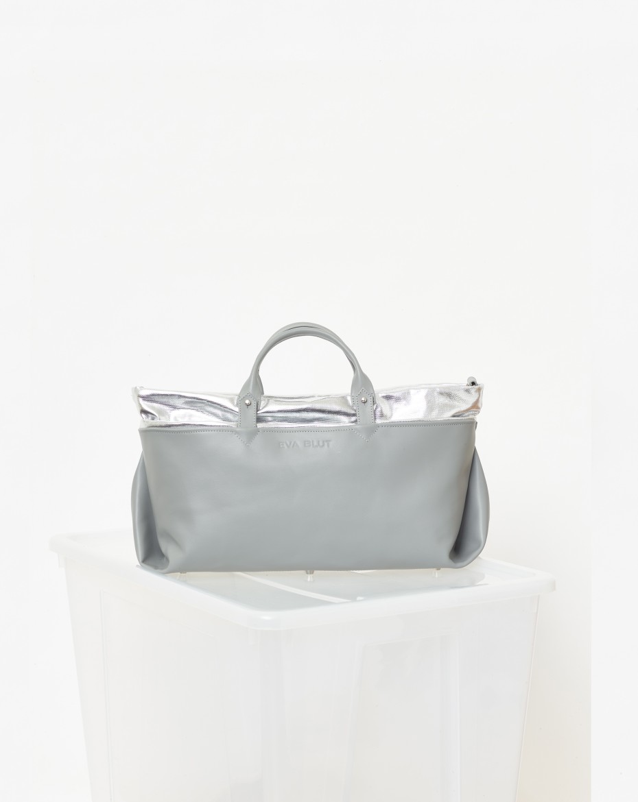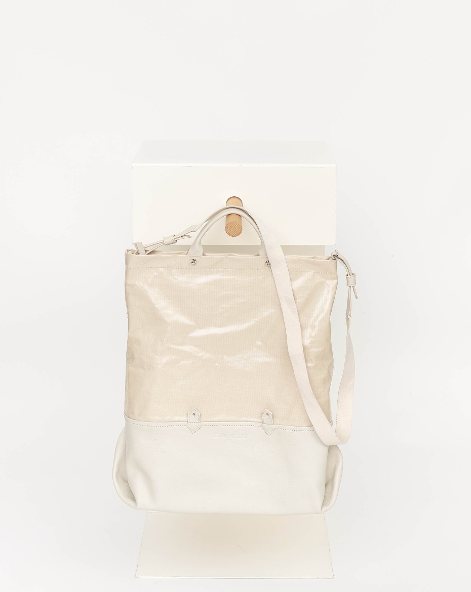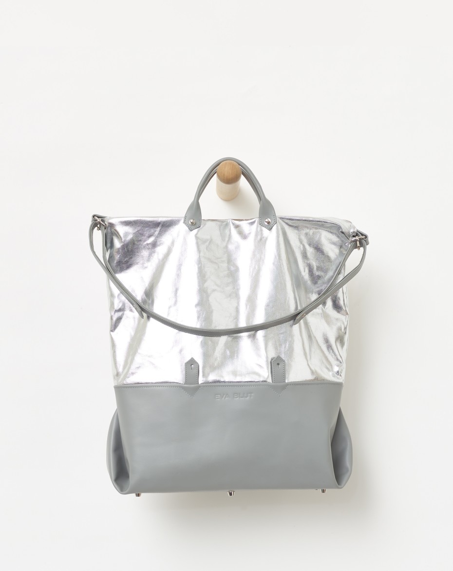 A new generation of an extendable basic format: The height of the canvas can be folded down to form a horizontal outer compartment that runs all the way round. This turns a large bag - big enough for laptop - into a very large one that can be customised to suit the needs.