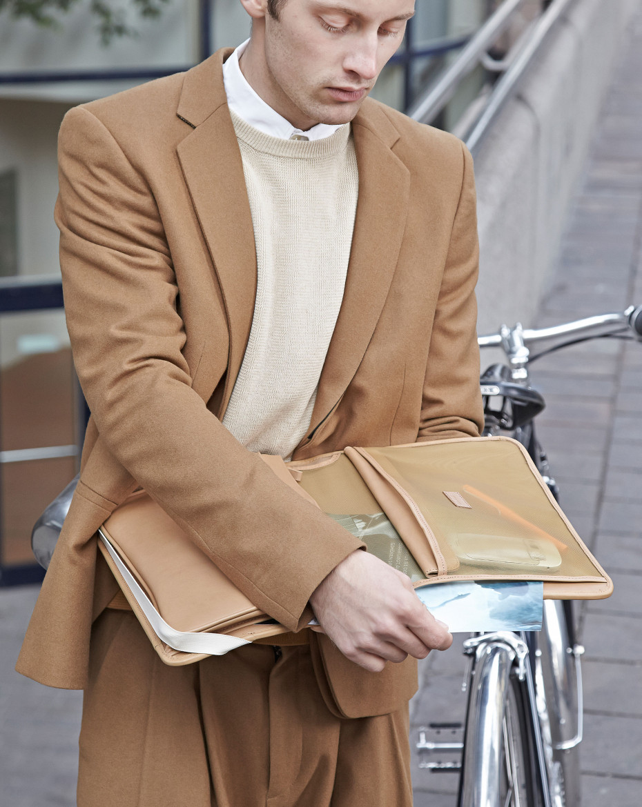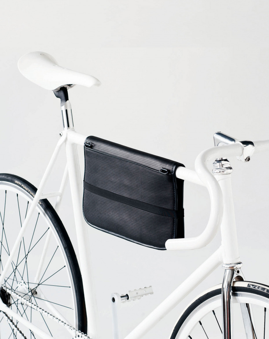 Frame folders are slim, sleek and elegant bags for documents, keys, mobile phones, wallets and tablets. Simply folded across the top-tube of the bicycle they stay tightly