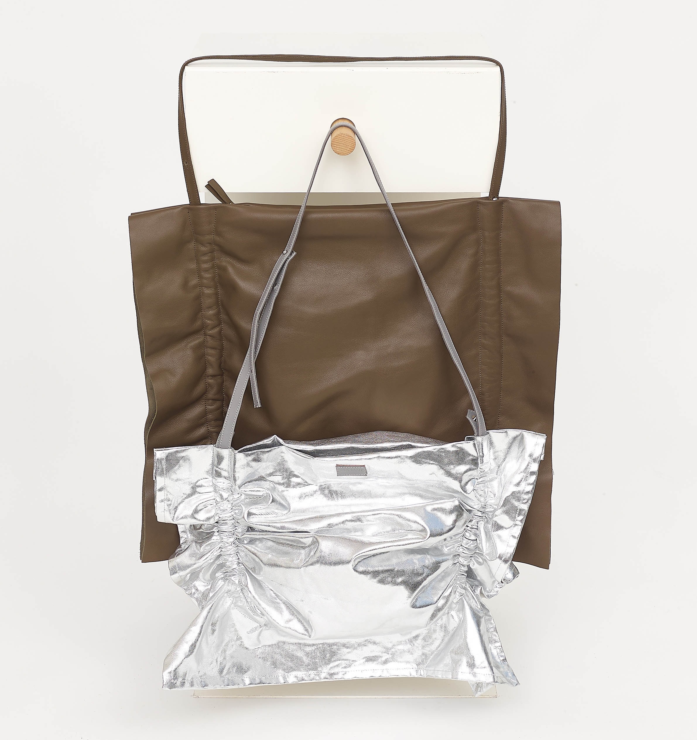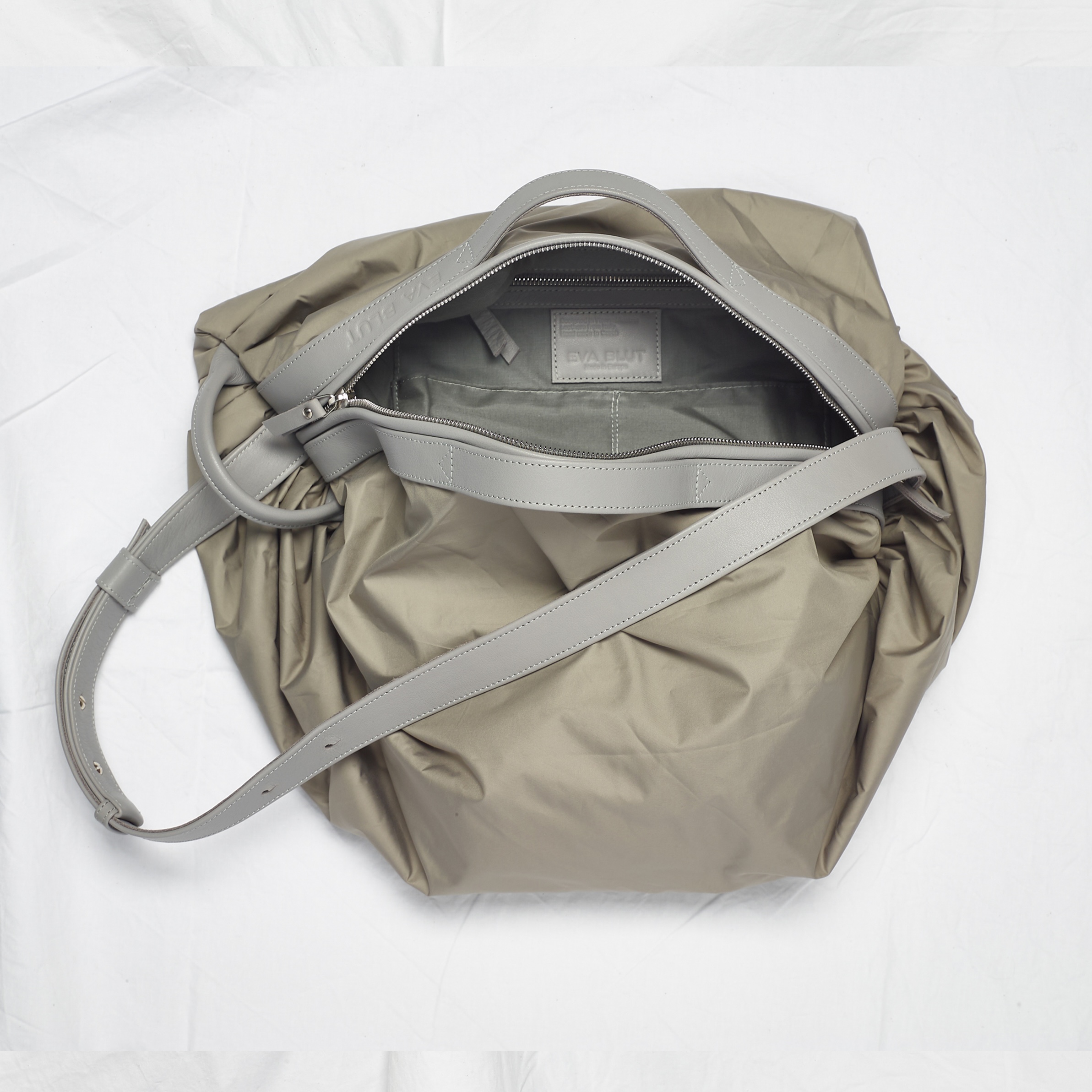 Curious, style-conscious, and always on an exploration tour. Attracted to beautiful things, she needs space, free hands, and quick access to her wallet (through the hidden side entry)! SHOPPER DOPPIO offers her all this — PLUS extra room when ‘a little more’ is needed: in the double layer of balloon silk, supported by the soft strap when necessary.