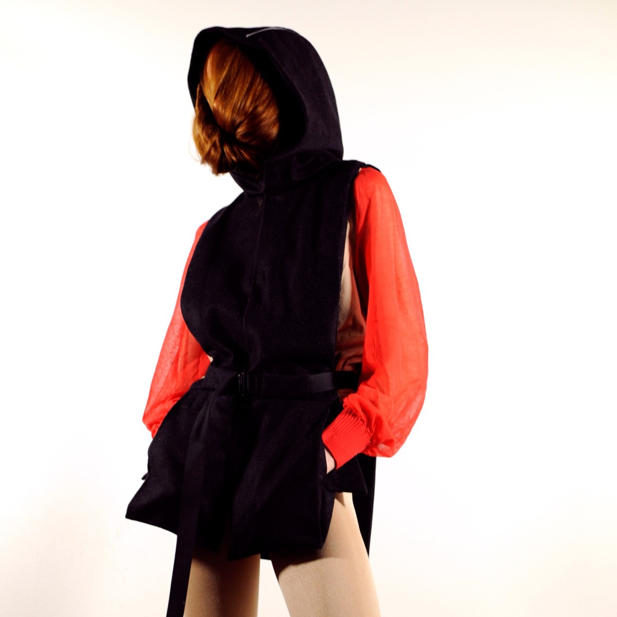 Nothing annoys him more than feeling restricted. Even bags are mostly just a hindrance he’d rather do without. The VEST FRAGMENT replaces any bag, because every surface of this vest can be used! Practically like a second skin — PLUS hood! Can be worn over or under a jacket or coat — one size.