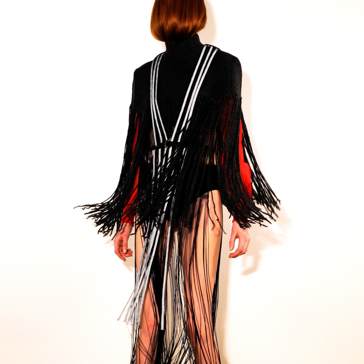 Conventions bore her. Instead of pure functionality, she loves personal expression and the effect on others. The interplay between form, function, and the surprising light moments in the REFLECTIVE TUNIKA suits her perfectly, because it transforms every outfit in an unconventional way and the fringes add movement to her presence.