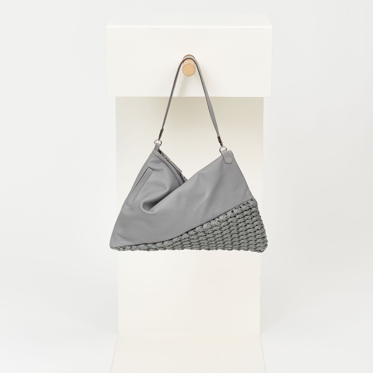 Happily different from most, she has a fine sense of style and charm. At the same time, she is practical and wants her needs met — especially when it comes to the essentials. Her bag — TRIANGOLO SMALL — with its hand-knit detail catches the eye, just like her entire appearance.